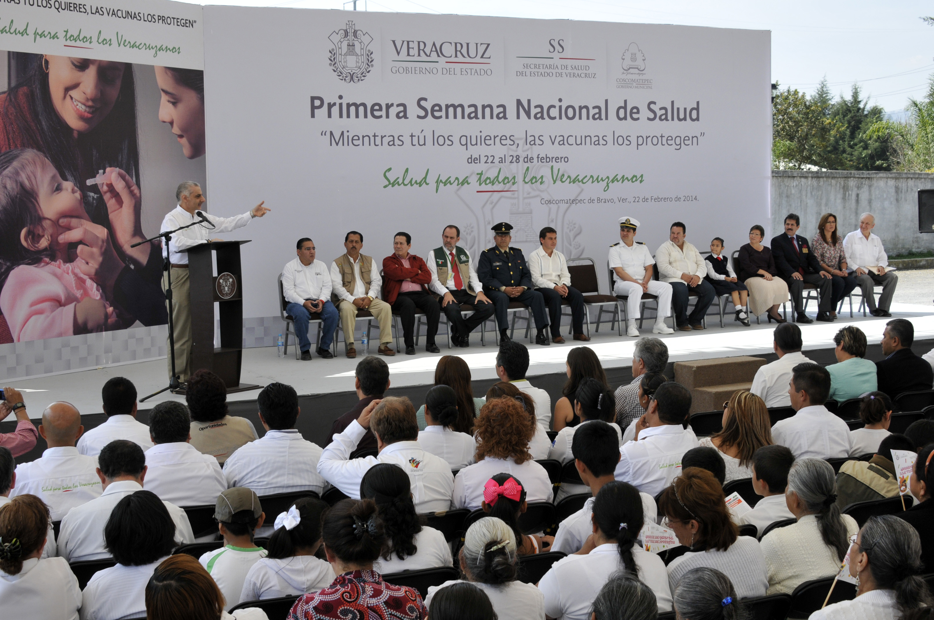 El recinto ferial del municipio de Coscomatepec fue el lugar que congregó a cientos de habitantes del lugar, alcaldes de municipios de la zona centro y autoridades del sector salud del estado para iniciar en el estado la aplicación de vacunas como: Sabin, Pentavalente, anti Hepatitis B, triple viral, Tétanos, ácido fónico y vida suero oral.