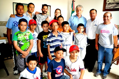 Córdoba, Ver.- Integrantes de la Liga de Formación de Béisbol de Córdoba recibieron este martes, de manos del alcalde Tomás Ríos Bernal y la presidenta del DIF Municipal Andrea Ríos Álvarez, uniformes deportivos con los que representarán al municipio y al estado de Veracruz, en el Campeonato Nacional de Béisbol de Iniciación 7-8 años “Ramón Taylor Bush”, del 26 de julio al 2 de agosto próximo, en el municipio de Cuautlancingo, Puebla.