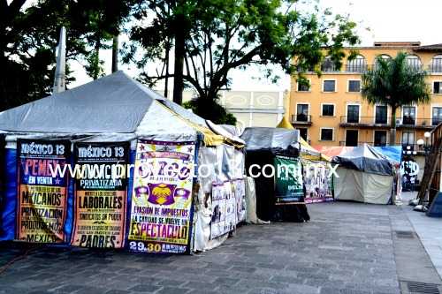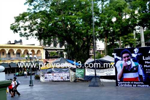 Córdoba ,Ver.-Esta es la imagen del campamento magisterial , que para l único que sirve es para pegar la publicidad cotidiana; porque los profesores, andan de vacaciones