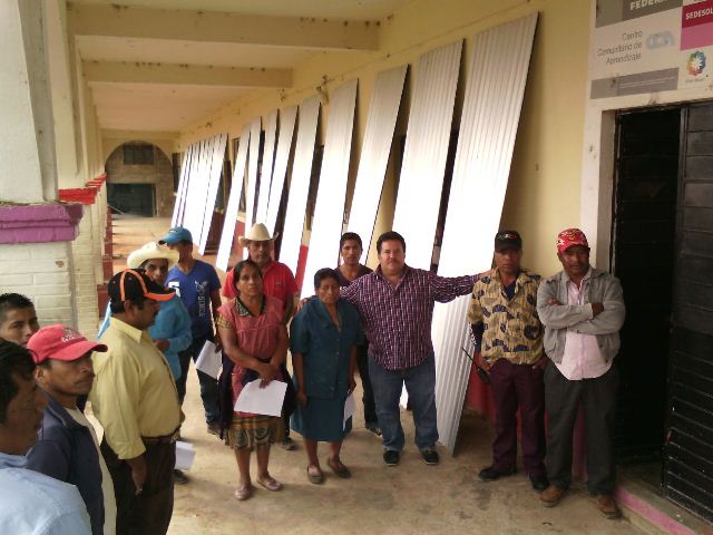 HUASTUSCO.- El diputado local del distrito de Huatusco, Miguel Sedas Castro, realizó la entrega de dos mil láminas de zinc a personas de escasos recursos, de igual forma hizo entrega de equipo de sonido y pinturas a escuelas del distrito que representa.