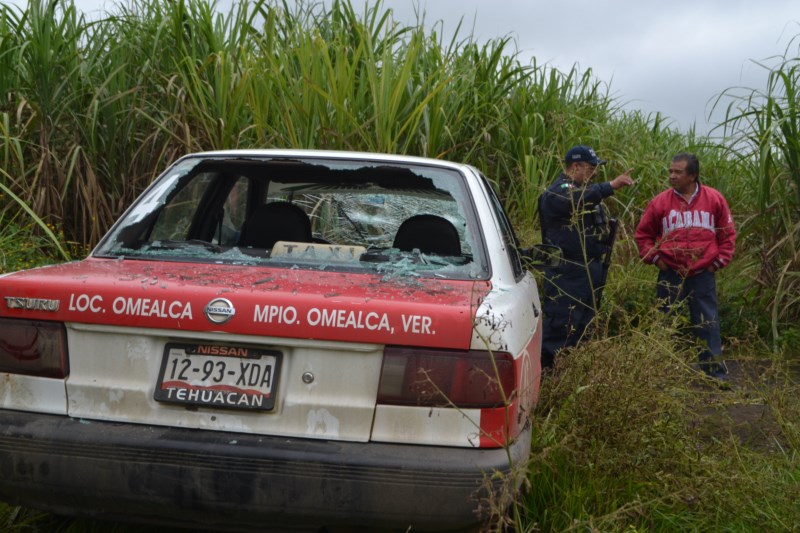 Un taxi de Omealca, marcado con el numero económico 45, mismo que fue robado anoche alrededor de las 20:30 horas, fue encontrado por la Policía municipal de Omealca, entre cañales a orillas del camino que que comunica entre San José de Abajo y El Nanche, municipio de Cuitláhuac.
